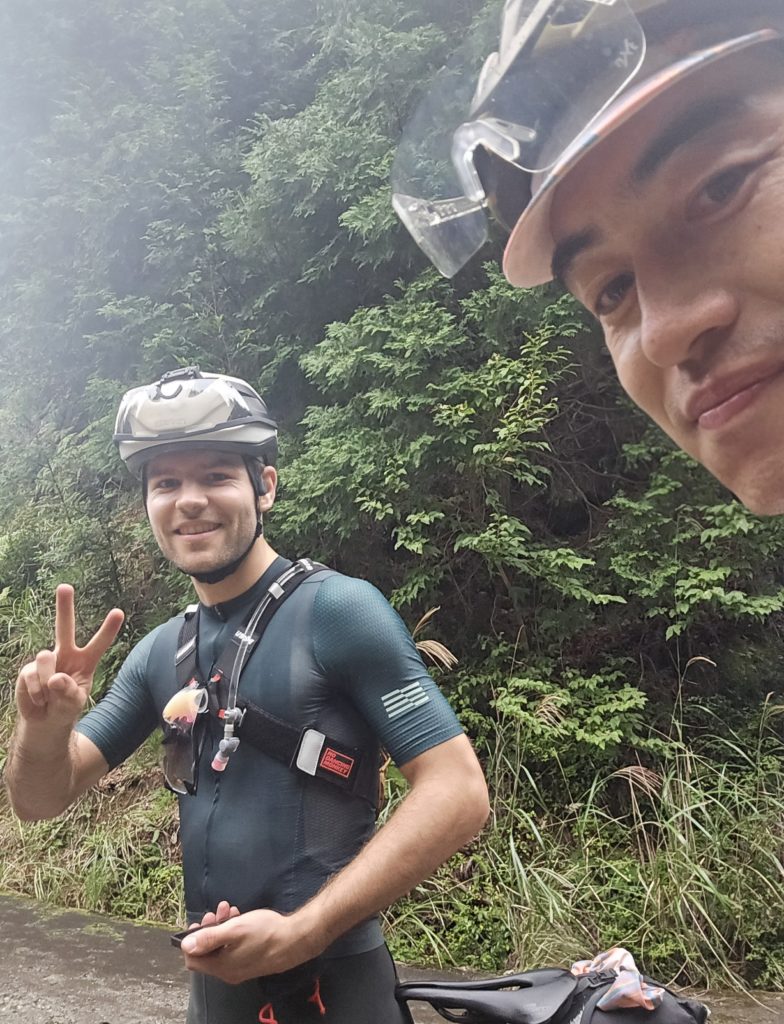 途中でドイツ人のヨナスさんに追いつかれ、一緒に走ることに。彼は私と同じサイクルジャージメーカー、サンボルトのジャージを持っており、しかも私の故郷である滋賀県の中でも近くに住んでいるという偶然が重なり、一気に親近感が湧いた。