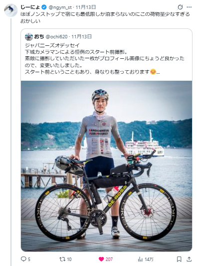 総距離およそ2,300km、累積標高は最低46,000m、鹿児島県の桜島から長野県松本市を目指すウルトラロングライドイベント『ザ・ジャパニーズ・オデッセイ2025(TJO2025)』を走った落合佑介のウルトラロングなレポートをお届けします。